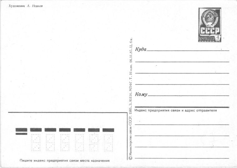 Оборотная сторона открытки