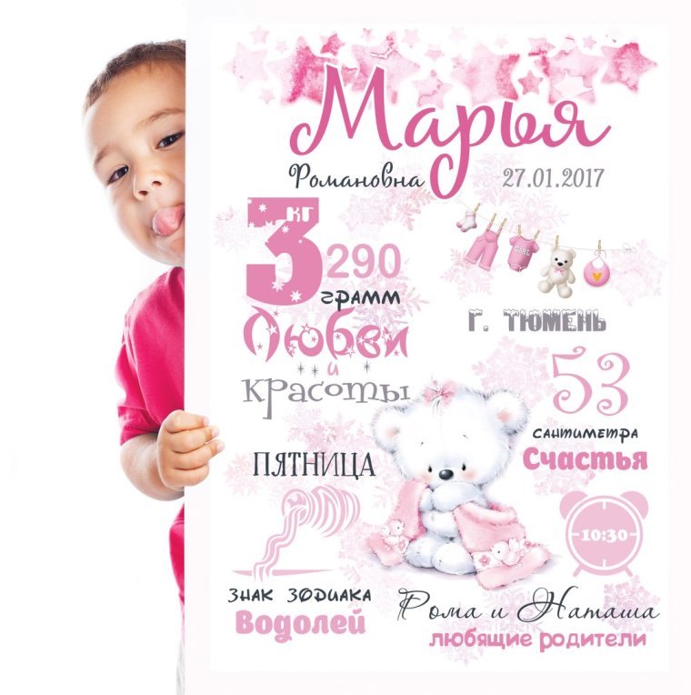 Фото: Плакат на выписку девочки