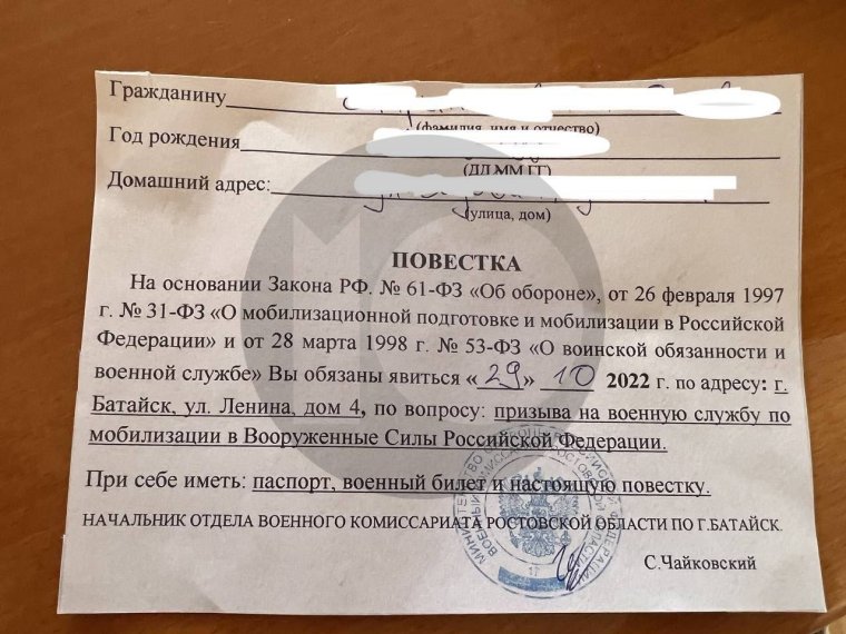 Фото: Повестка в военкомат 2022
