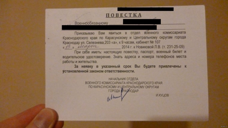 Фото: Повестка в военкомат