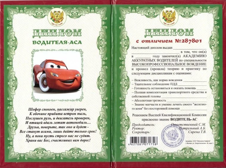 Фото: Шуточные дипломы и грамоты