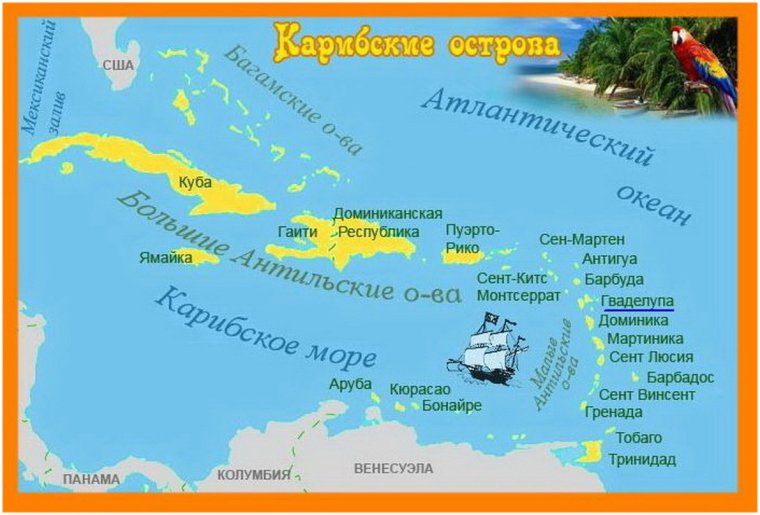 Фото: Острова Карибского моря карта политическая