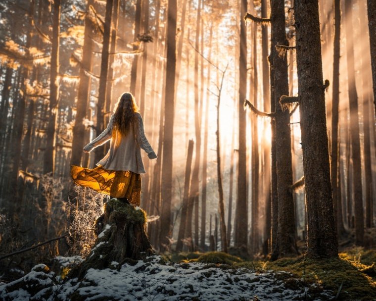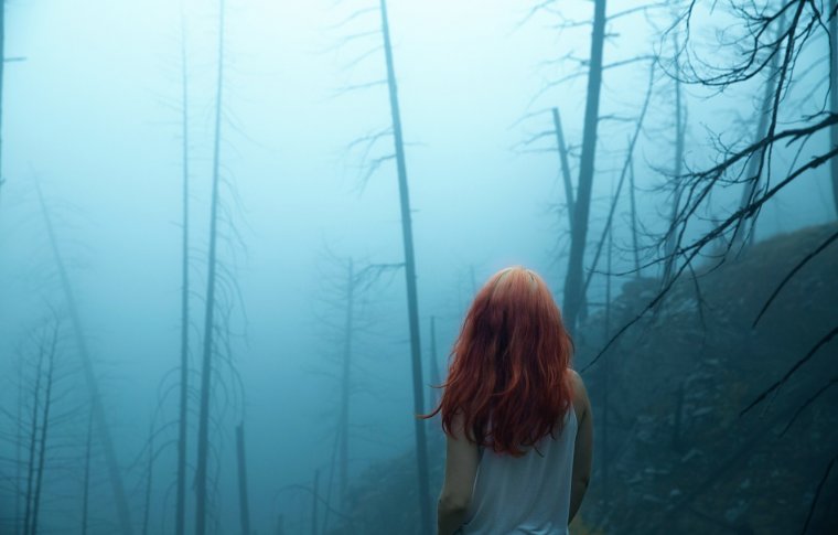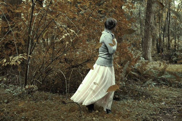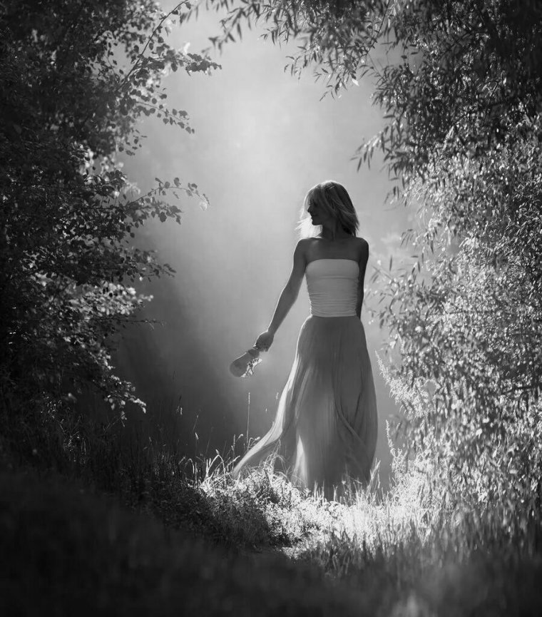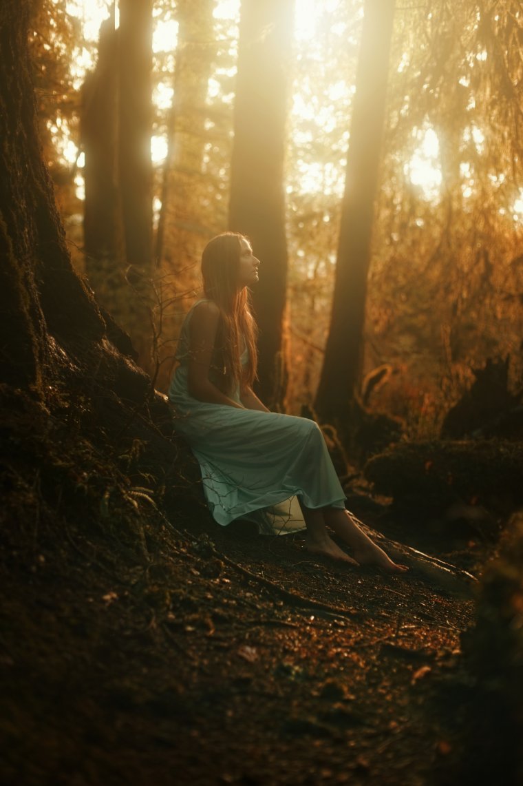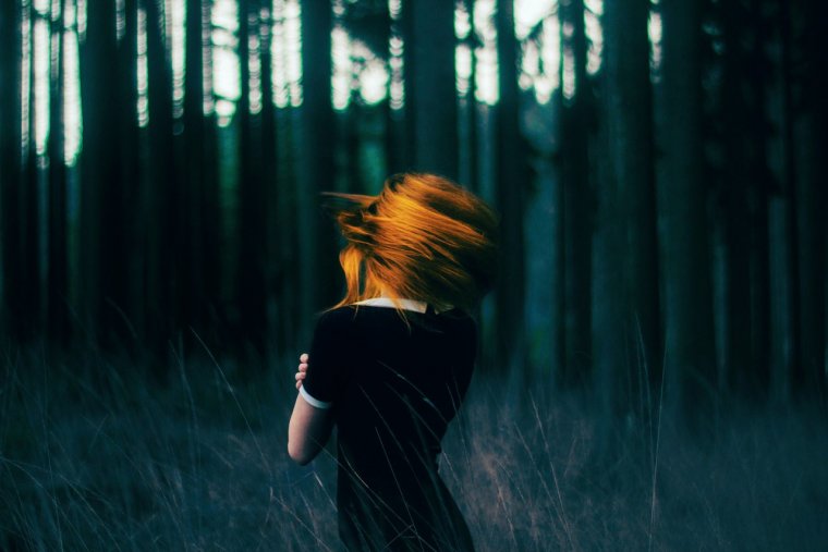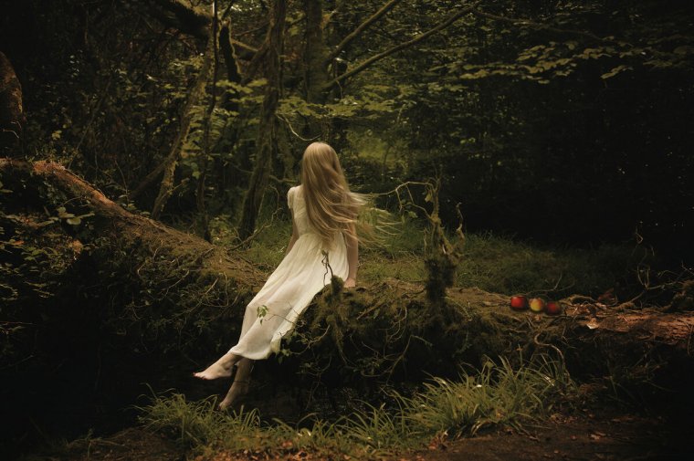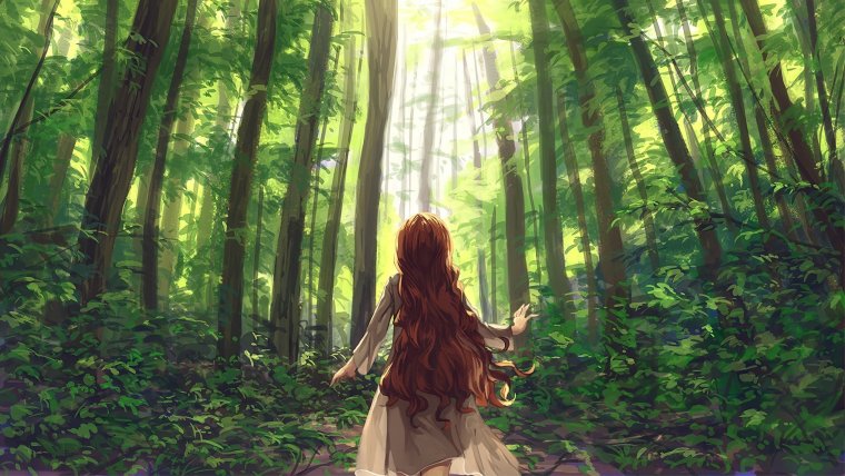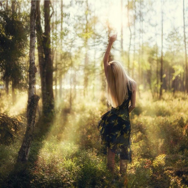 Девушка в лесу со спины (37 фото)