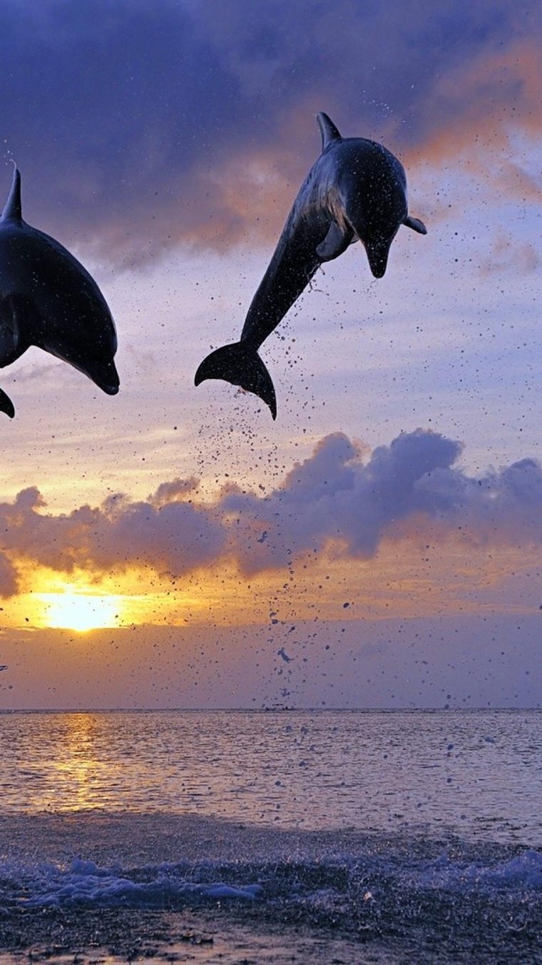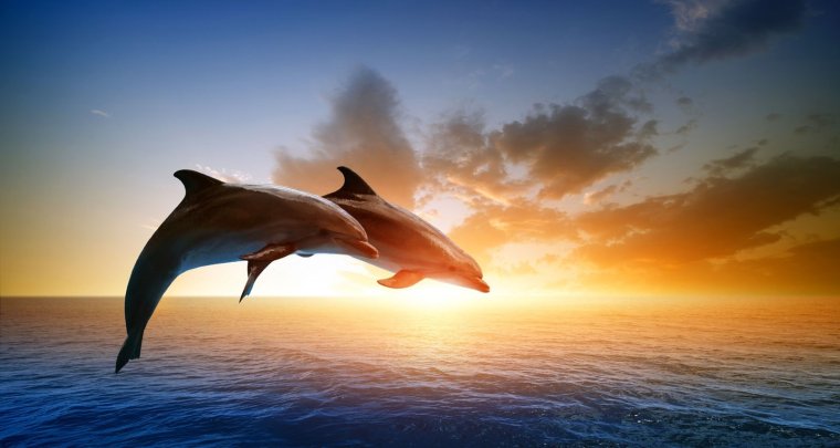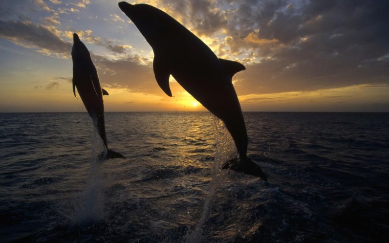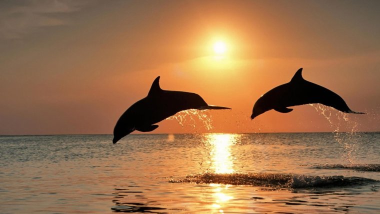 Фото: Два дельфина на закате
